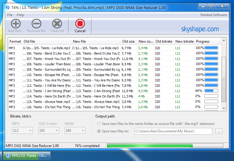 The feature that distinguishes MP3 OGG WMA Size Reducer from other programs is the support of the three most popular lossy audio formats at once.